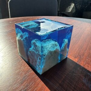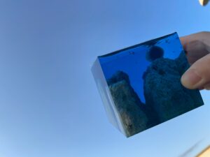 イタリア産の天然大理石トラバーチン・ロマーノをアクアブルーのクリアレジンに閉じ込めました👍